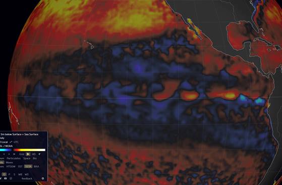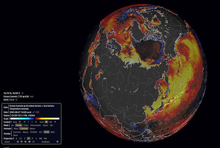 Data source: NOAA OISST v2.1, visualized on earth.nullschool.net.
